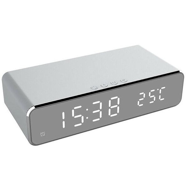 Vackarklocka Med Qi Laddning Och Termometer Silver Vackarklockor Teknikproffset