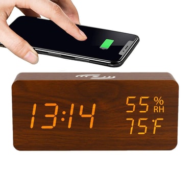 Digital Led Vackarklocka Med Tradlos Laddning Brun Snabba Leveranser
