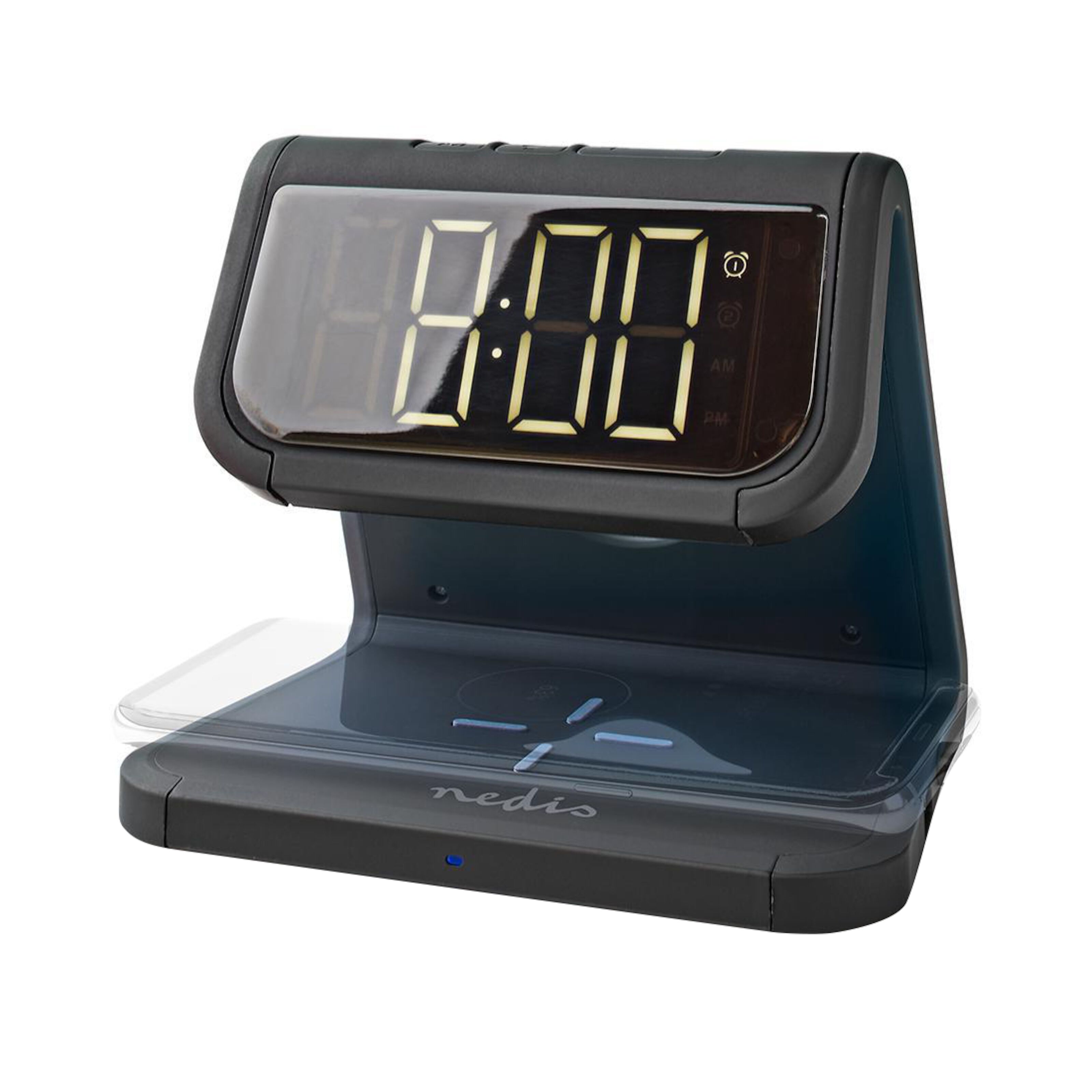 Klocka med qi laddning. Micro-USB till USB-kabel ingr. Nedis 3-i-1-vckarklocka har tre funktioner. Mngsidig klockradio med trdls laddning via Qi-standard och Bluetooth-funktion fr anslutning av extern enhet.