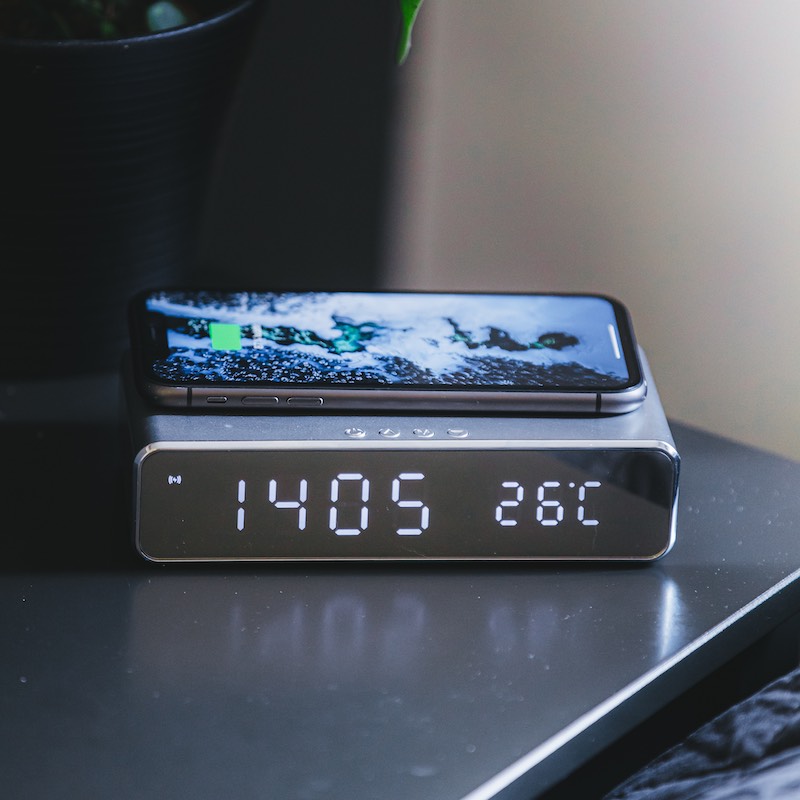 Med en frinstlld vckningstid vet du att du kommer att vara upp varje morgon. Smart LED vckarklocka med trdls laddning - svart. Trdls Qi-laddning en LED-klocka med larmfunktion och en nattlampa.